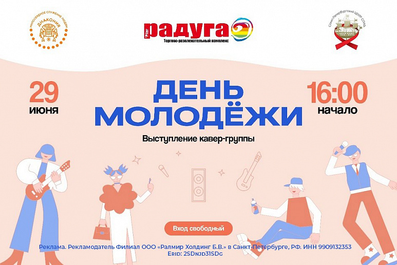 29 июня 2024 года в атриуме ТРК «Питер Радуга» в 16:00 состоится концерт в поддержку массового тестирования горожан на ВИЧ-инфекцию и посвященный Дню молодежи.