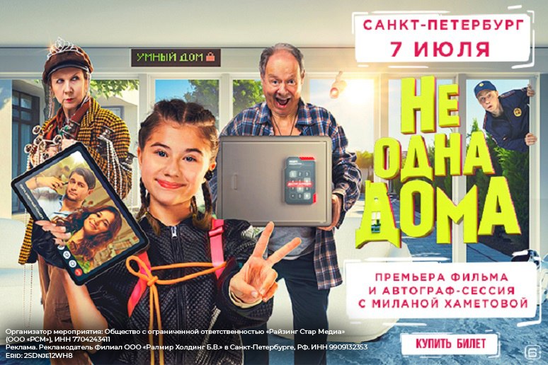 7 июля 2024 года в кинотеатре «Синема Парк» в ТРК «Питер Радуга» пройдет премьера фильма «Не одна дома», в котором юная актриса, блогер, певица и телеведущая Милана Хаметова сыграла одну из главных ролей.