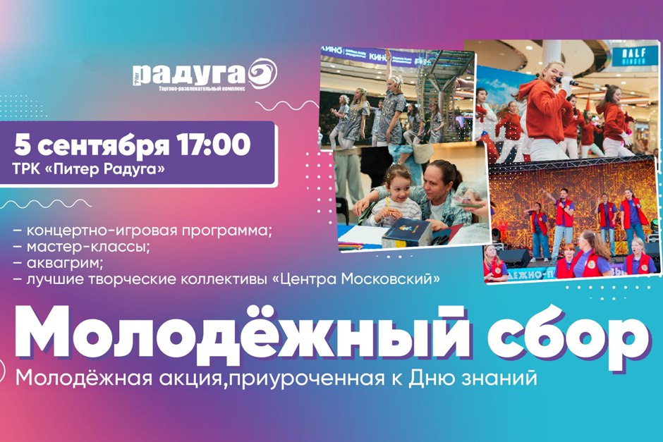 5 сентября 2025 года с 17:00 до 19:00 в атриуме ТРК «Питер Радуга» пройдет молодежная акция «Молодежный сбор «МПЦ «Московский».