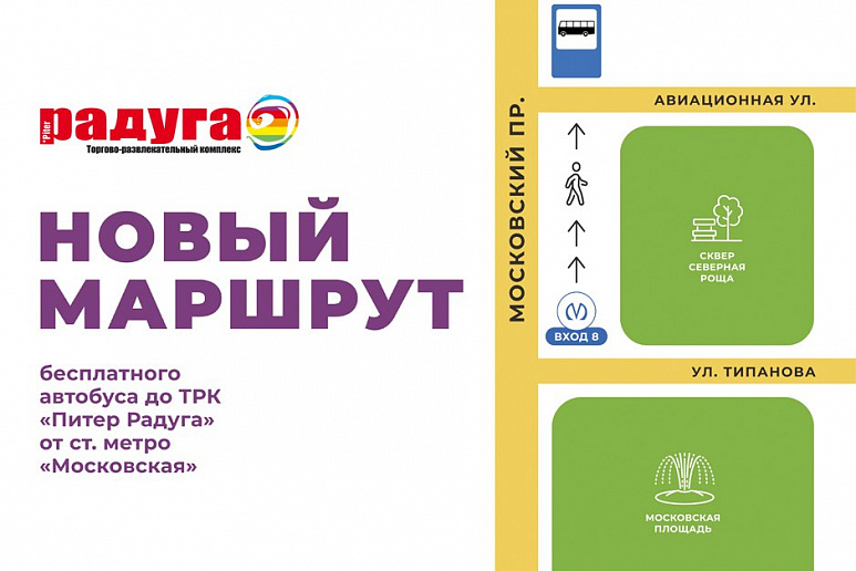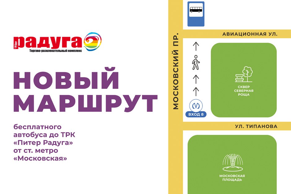 С 29 июня 2025 года на ремонт закрывается станция метро «Парк Победы». Теперь бесплатные автобусы от ТРК «Питер Радуга» будут курсировать до ст. м. «Московская».
