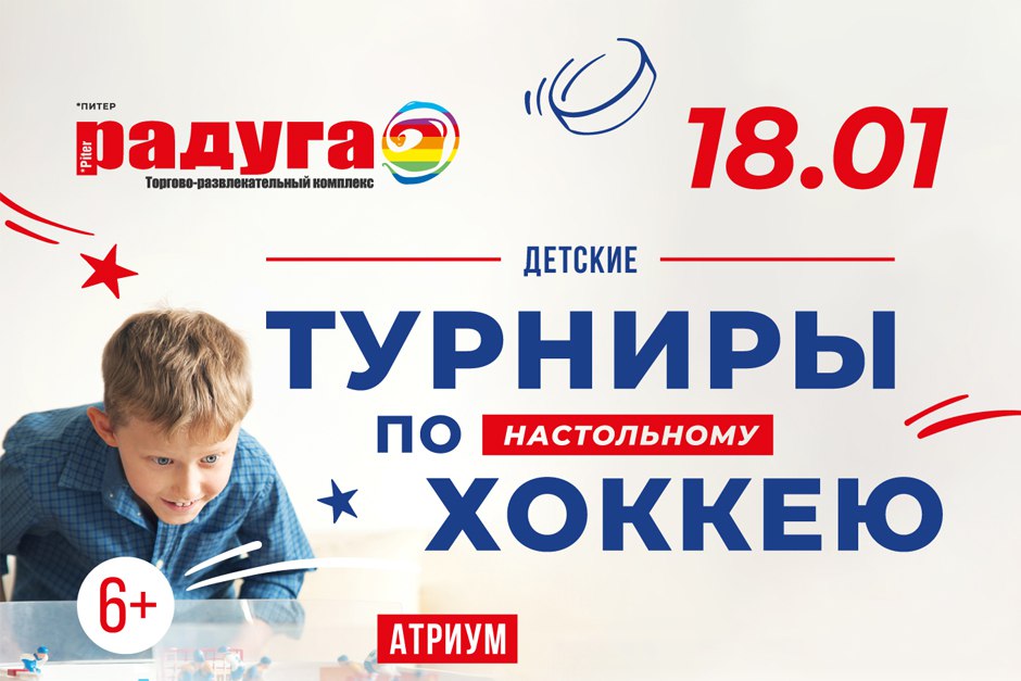 18 января 2026 года в атриуме ТРК «Питер Радуга» пройдут детские турниры по настольному хоккею.
