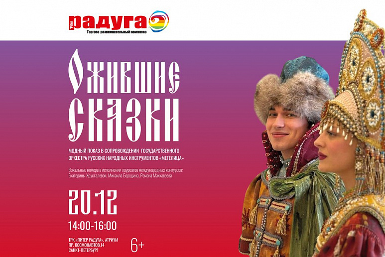 20 декабря 2025 года в атриуме ТРК «Питер Радуга» совместно с Санкт-Петербургским государственным университетом промышленных технологий и дизайна состоится модный показ костюмов в русском стиле «Ожившие сказки».